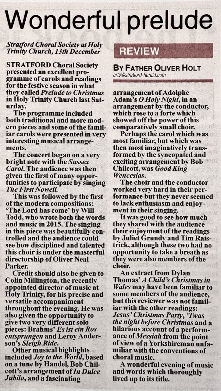 The following review was publihed in the Stratford Herald newspaper on 18th Decmber 2025